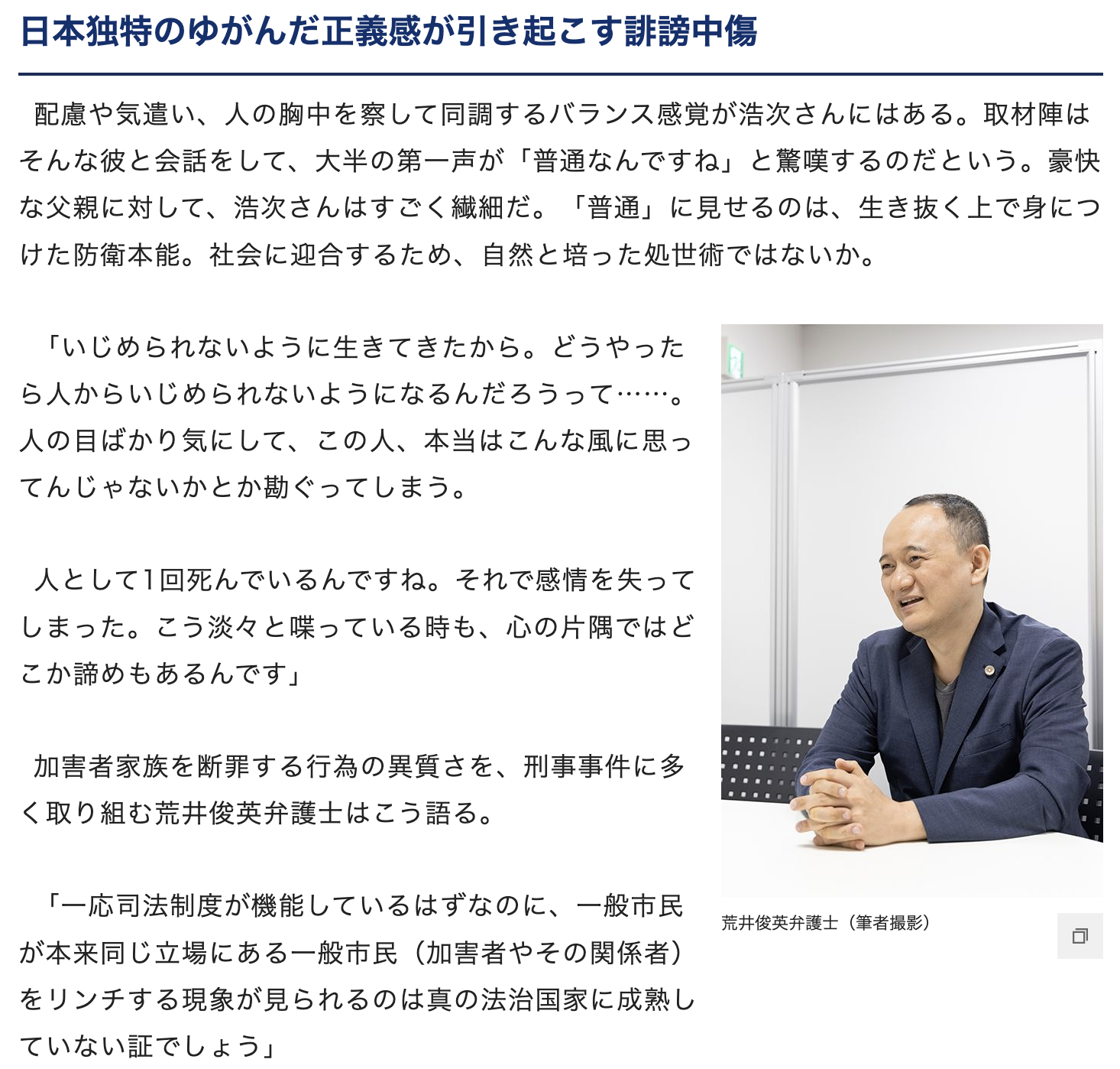 荒井俊英弁護士 律師 大阪弁護士 加害者断罪 冤罪事件に強い 刑事事件に強い